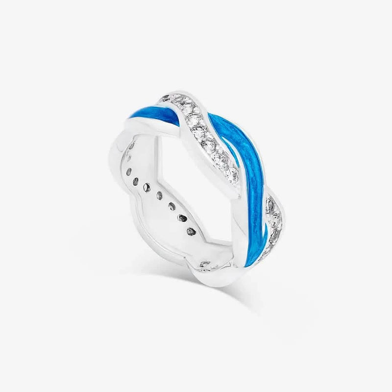Beautiful twisted Ashes ring. You can personalise this ring in 12 colours, and your ashes, hair or fur will go all round the ring entwined with a row of white CZ gems