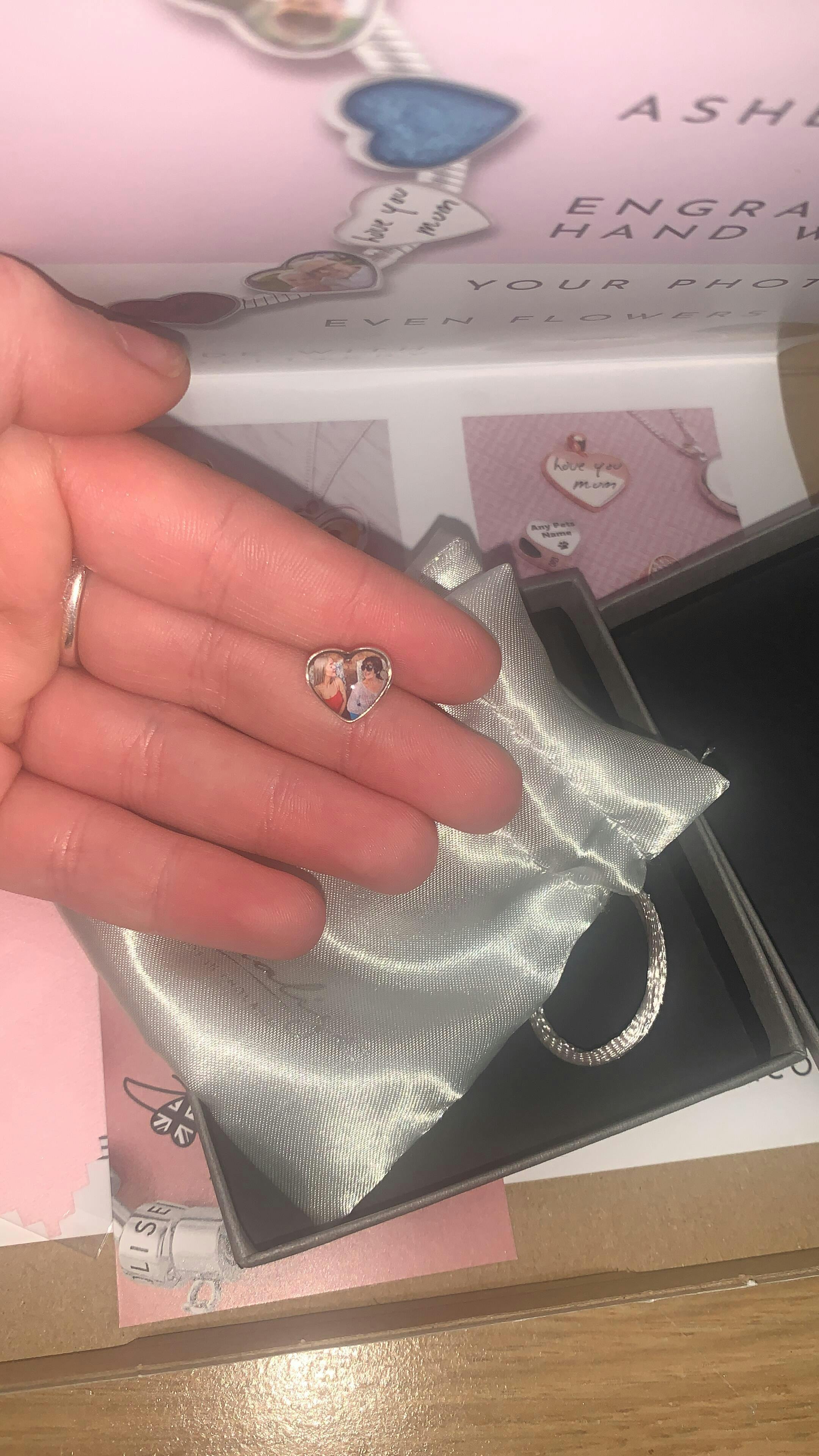 Each charm arrives in a satin pouch and gift box, ready for gifting, and includes a silver polishing cloth. Photo charms are waterproof and creating it takes 1-2 days, with UK delivery in 1-3 days. Choose your delivery option at checkout. You can also find an ashes version of this charm here