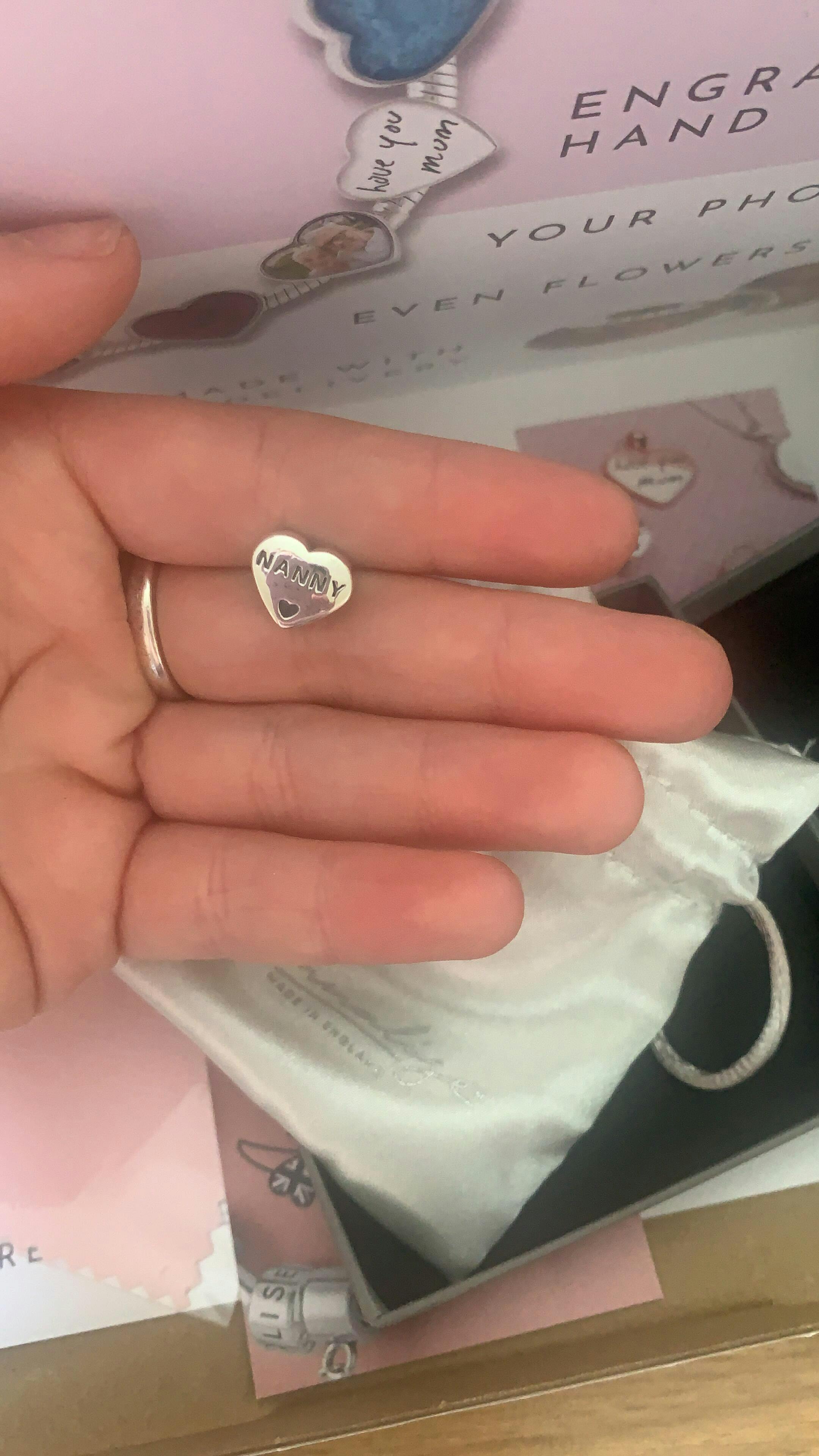 'Nanny' Pandora Compatible Personalised Photo Charm features your photo on the front and "Nanny" engraved on the back. Made from 925 silver, it fits Pandora, Lovelinks, and Chamilia bracelets.