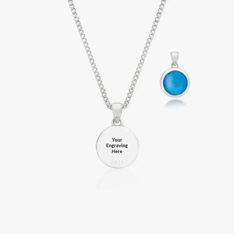 Choose from 12 colours and different chain lengths to make your ashes necklace really unique. Add an engraving on the back in the font of your choice. You can also choose to have it personalised with hair or fur too.