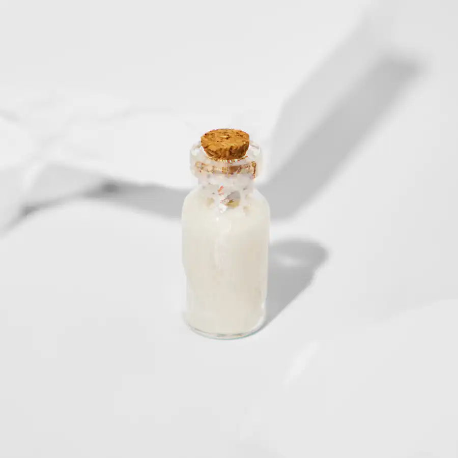 The leftover milk is sent back with your order. I also make you one small glass keepsake per item in the order too.